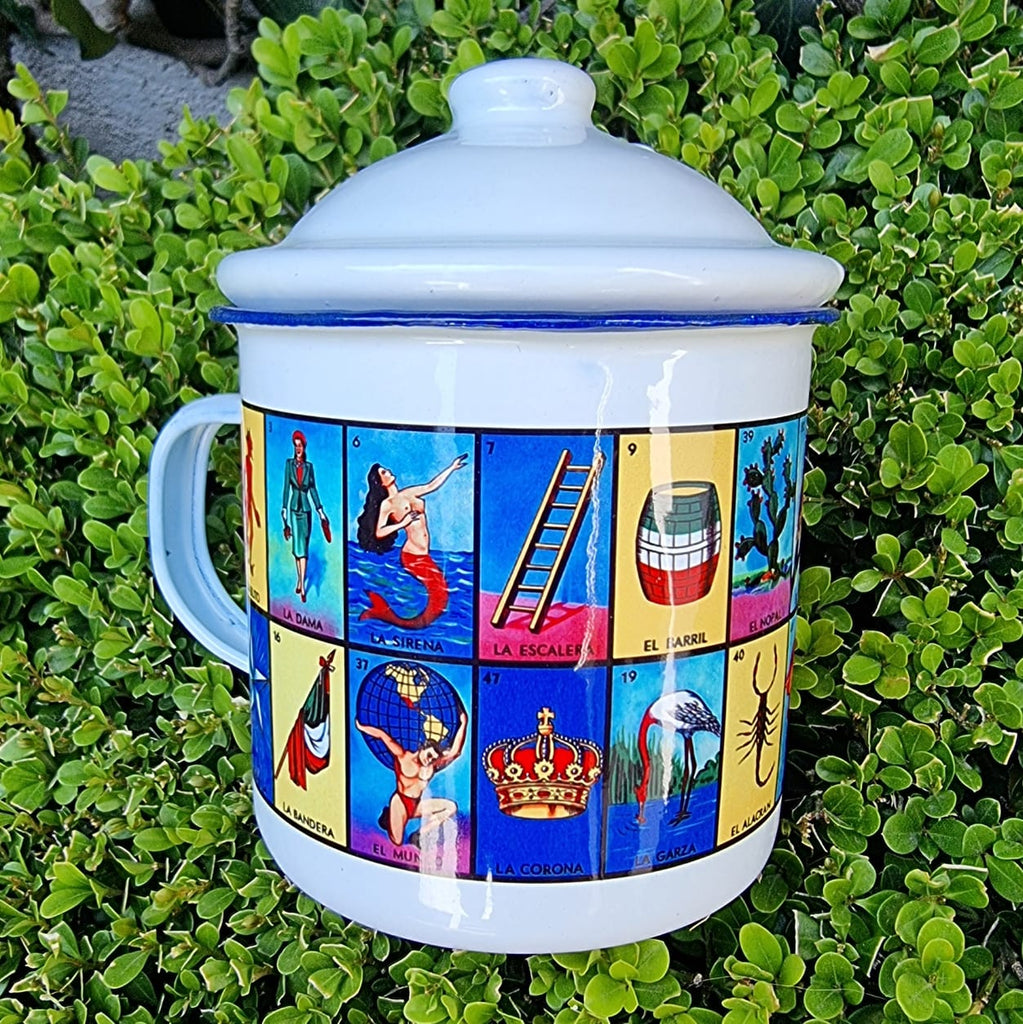 Pocillo con tapa de peltre "Lotería Mexicana"